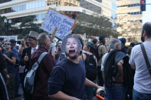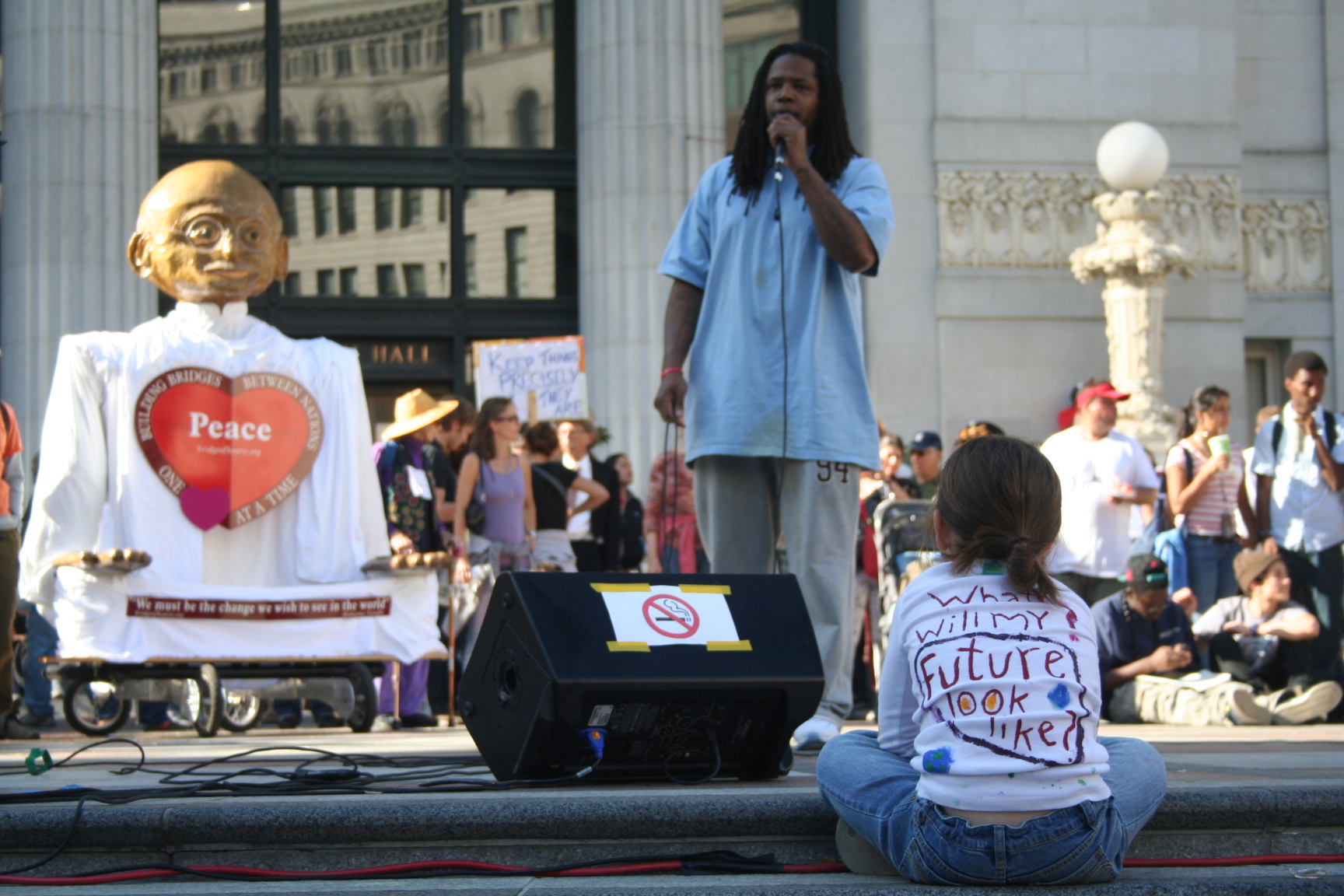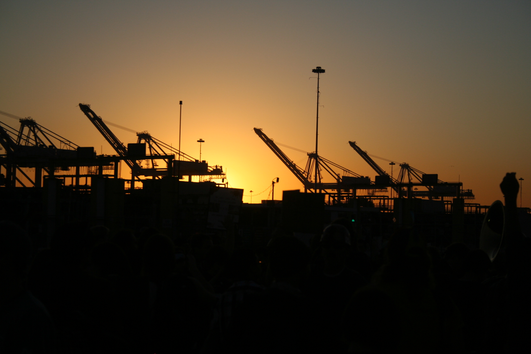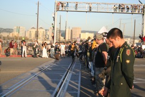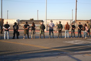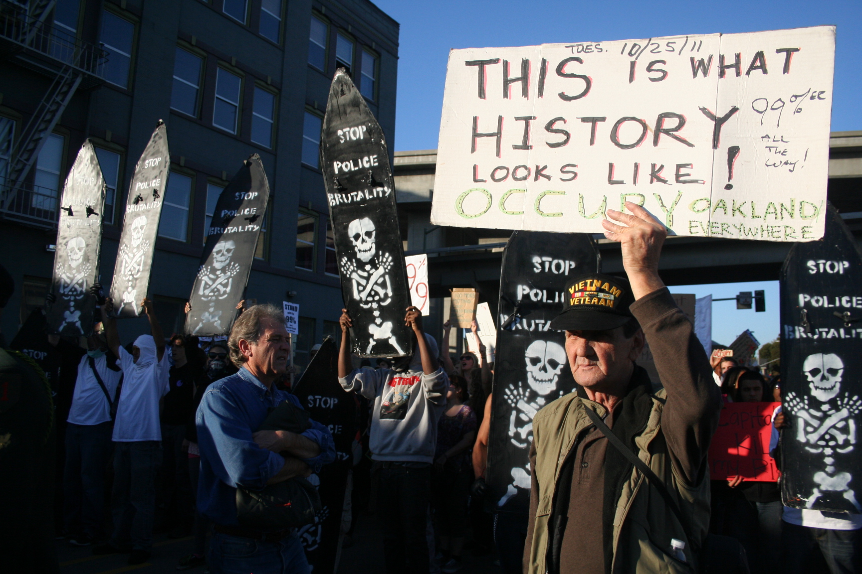 Veterans of foreign wars create barrier between protestors and police at the Port of Oakland 11.2.2011